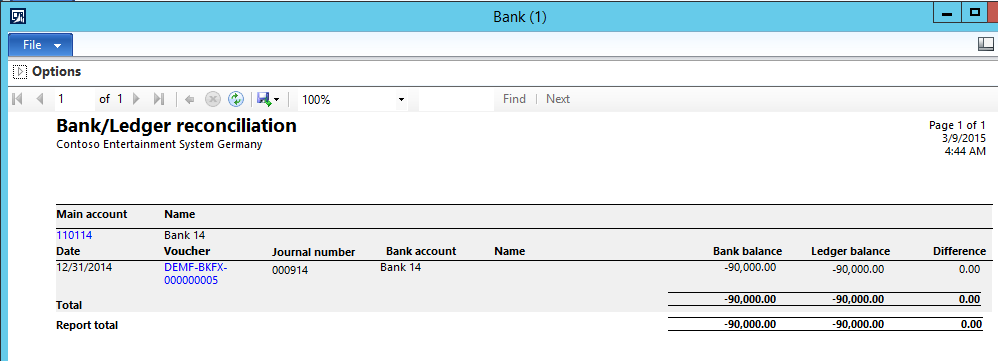 To clear this balance on the transfer account the foreign currency revaluation process is run in the General Ledger module for the respective account. The outcome of this revaluation process is a balance of 0 EUR on the transfer account.
