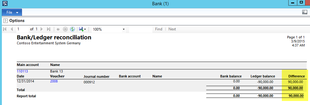 As you can identify from the next screenshot, after having done the previously described system modifications, Dynamics AX does now record the exchange rate adjustment of 40 EUR on the newly setup account that represents a realized exchange rate adjustment. This change allows you reporting currency exchange rate differences correctly in your profit and loss statement.