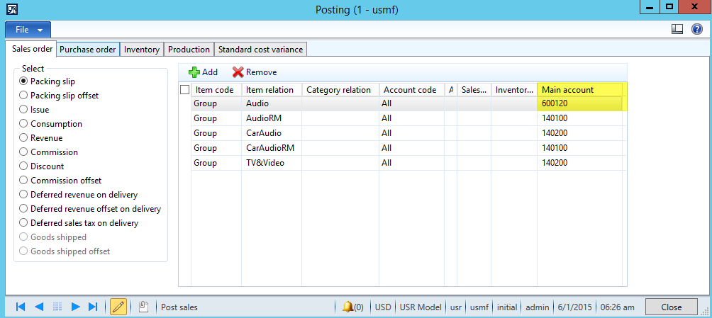Please note that no change has been made to the main account that Dynamics AX automatically picked up from the original sales order.
