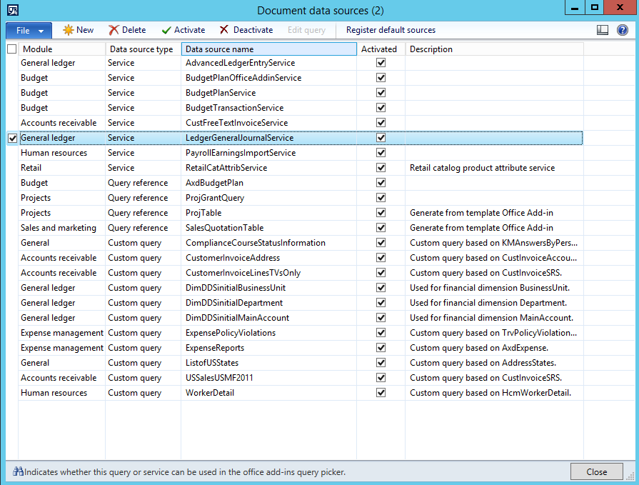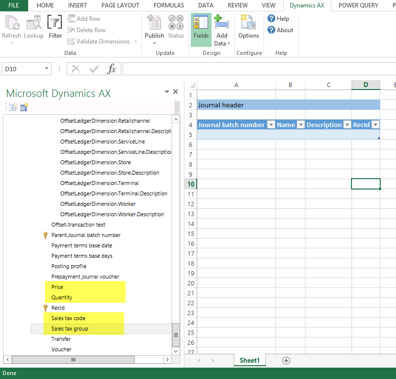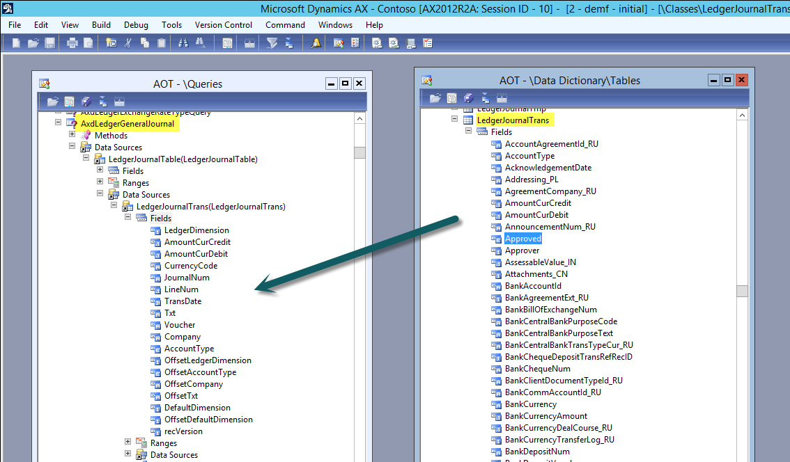 As in the previous blog post, my next step was dragging and dropping the new fields from the LedgerJournalTrans table to the AxdLedgerGeneralJournal query.