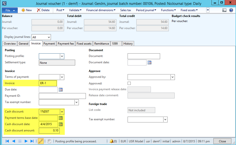 A final remark that I want to make here is that the sample code provided covers only situations where the fixed asset and project related data are entered on the “offset account side” of the account entry. If you want to use the sample code in a live environment you might thus have to make some additional enhancements to cover also other ways of preparing vouchers, such as split postings, entering fixed asset / project related data on the “account side” of a transaction and alike.