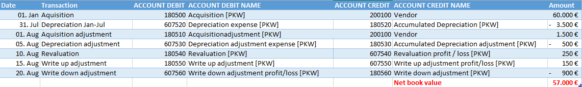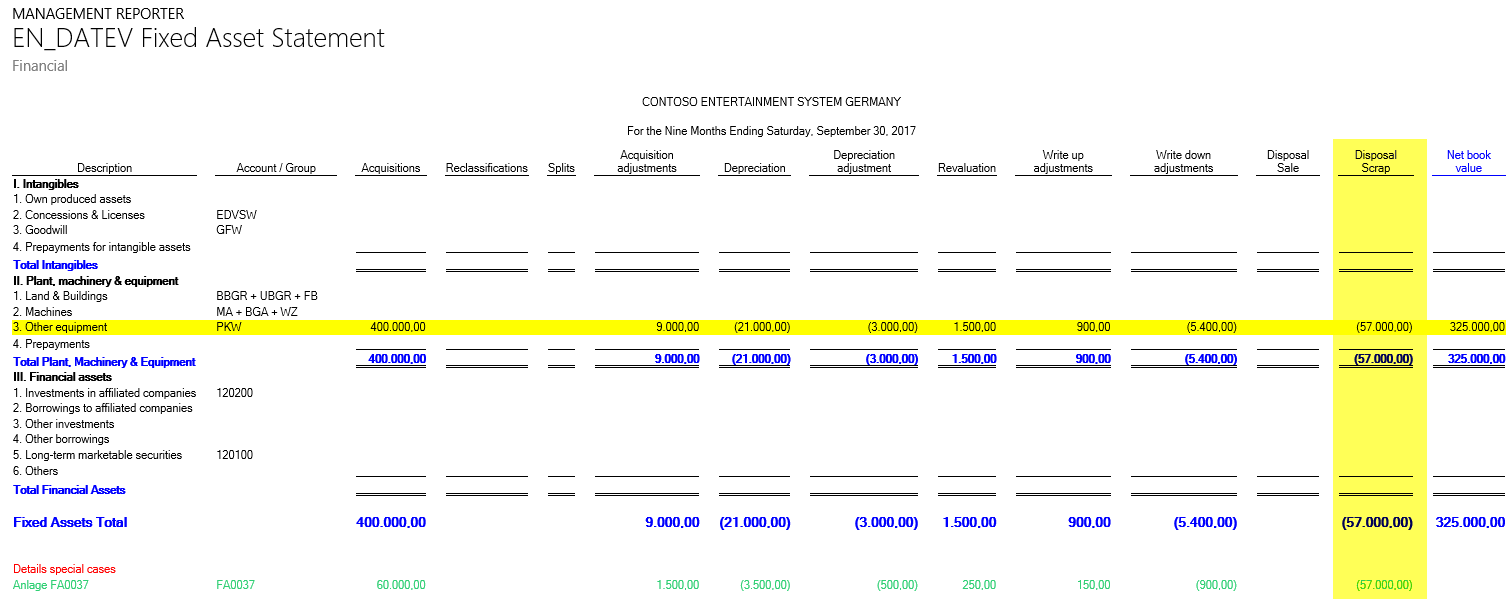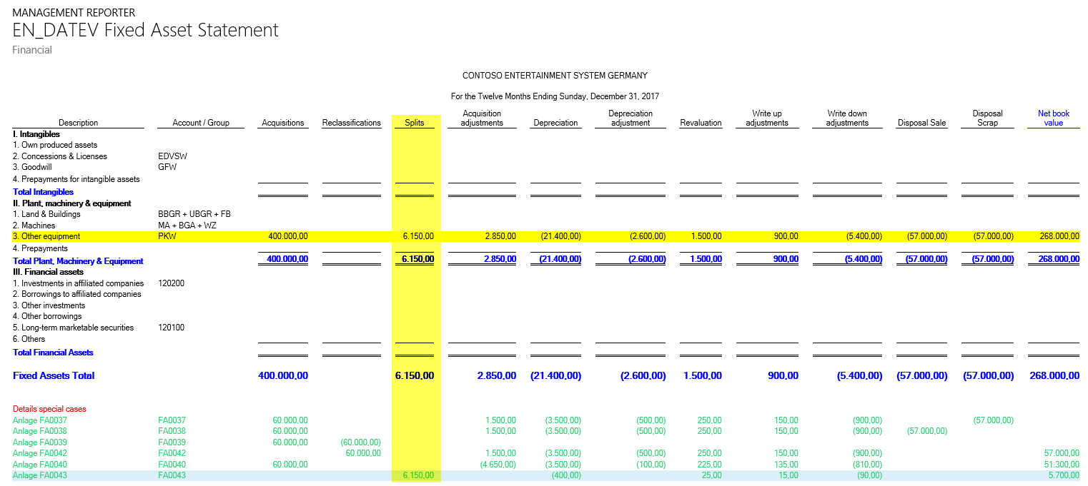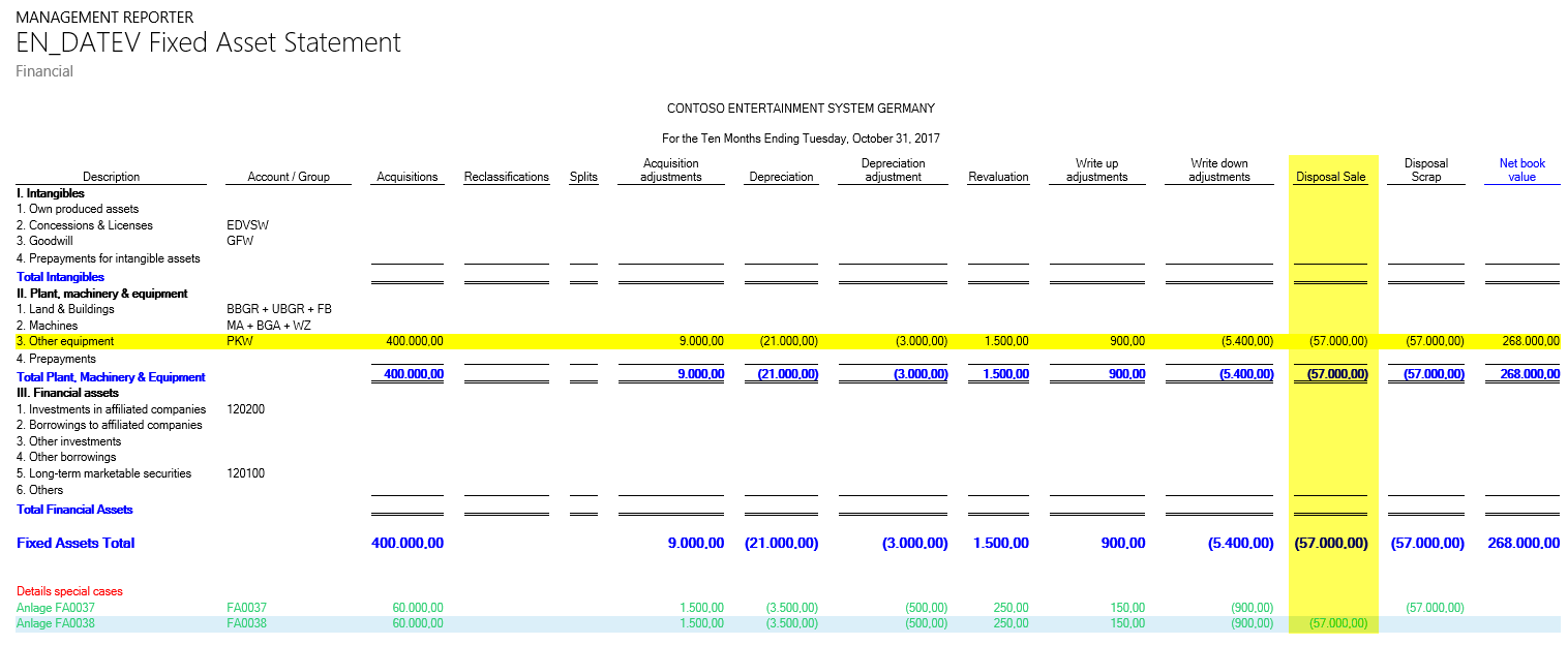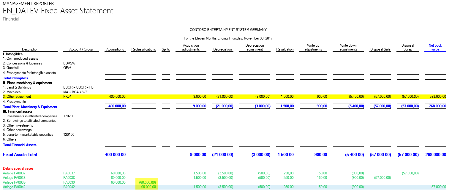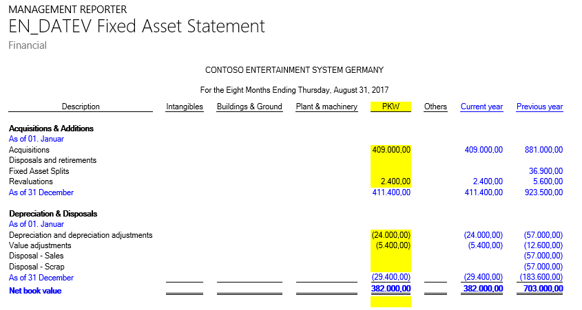 If you combine both elements in a new report, basically any fixed asset statement format required can be realized.