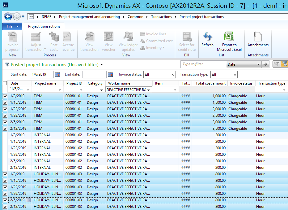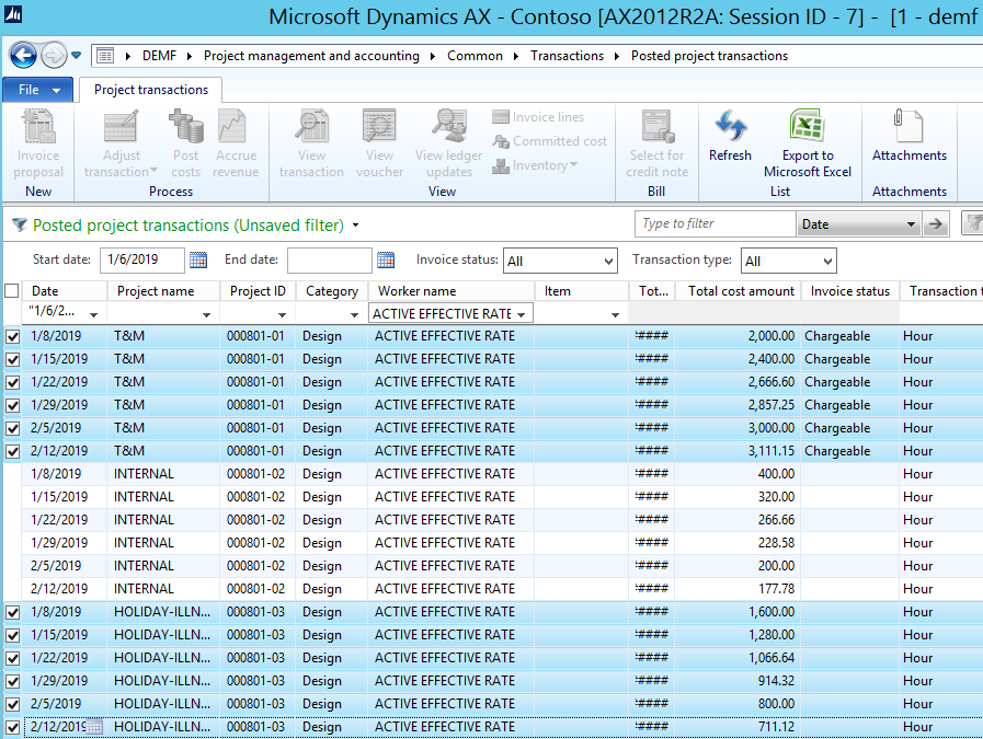 This requirement causes a problem for the general usability of the indirect cost functionality in Dynamics AX as most indirect costs that IAS 11 allows to be shifted to projects are not directly related to hour transactions but rather to other cost elements such as expense and item transactions. Yet, the indirect cost feature does not apply to project transactions other than hours.