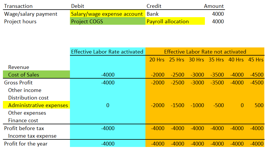 In the previous post I showed you what effect the use of the effective labor rate might have on a company’s financial statements and its financial ratios, such as e.g. the gross profit margin. Within this post I want to take a look at a related project management feature that can have similar financial implications, namely the indirect cost functionality.