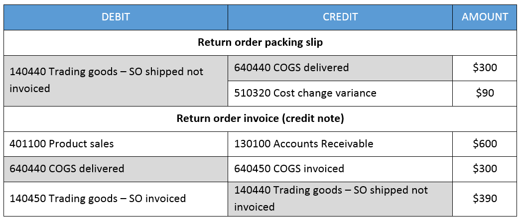 A second possible source for cost change variances are situations where standard cost items are sold to customers and returned after a cost price adjustment has been completed.