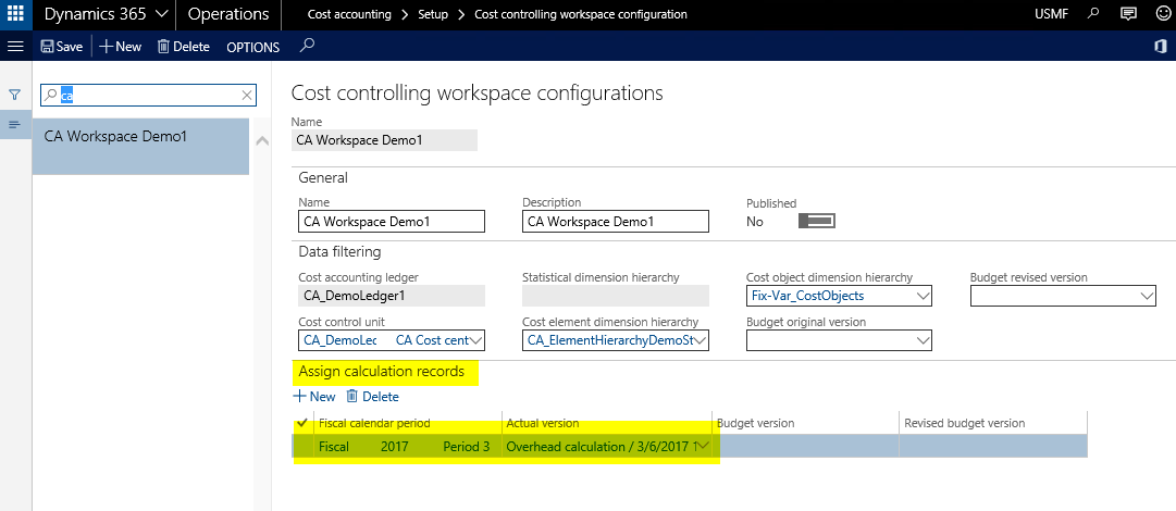 The last step required for illustrating the fixed and variable cost parts in the cost controlling workspace is the assignment of the actual overhead calculation version in the workspace configuration form.
