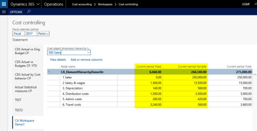 Afterwards, the fixed, variable and total costs can be identified in the cost controlling workspace…