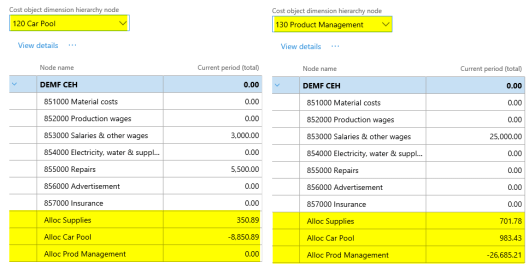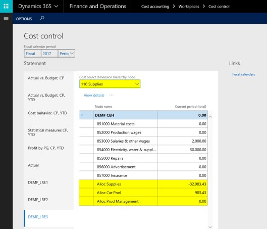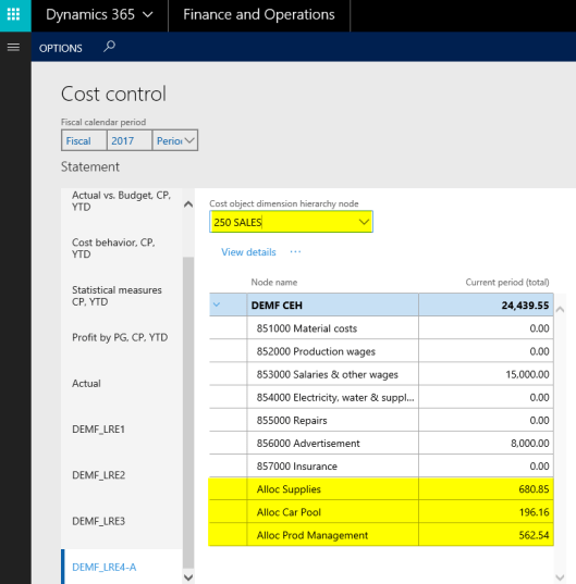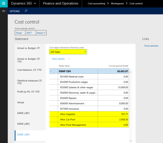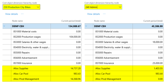 This example illustrates once again that previously used statistical measures and formulas can be re-used multiple times in the new D365 cost accounting module. This ability can be very beneficial for example if one wants to run simulations or tests based on previously used allocation bases.