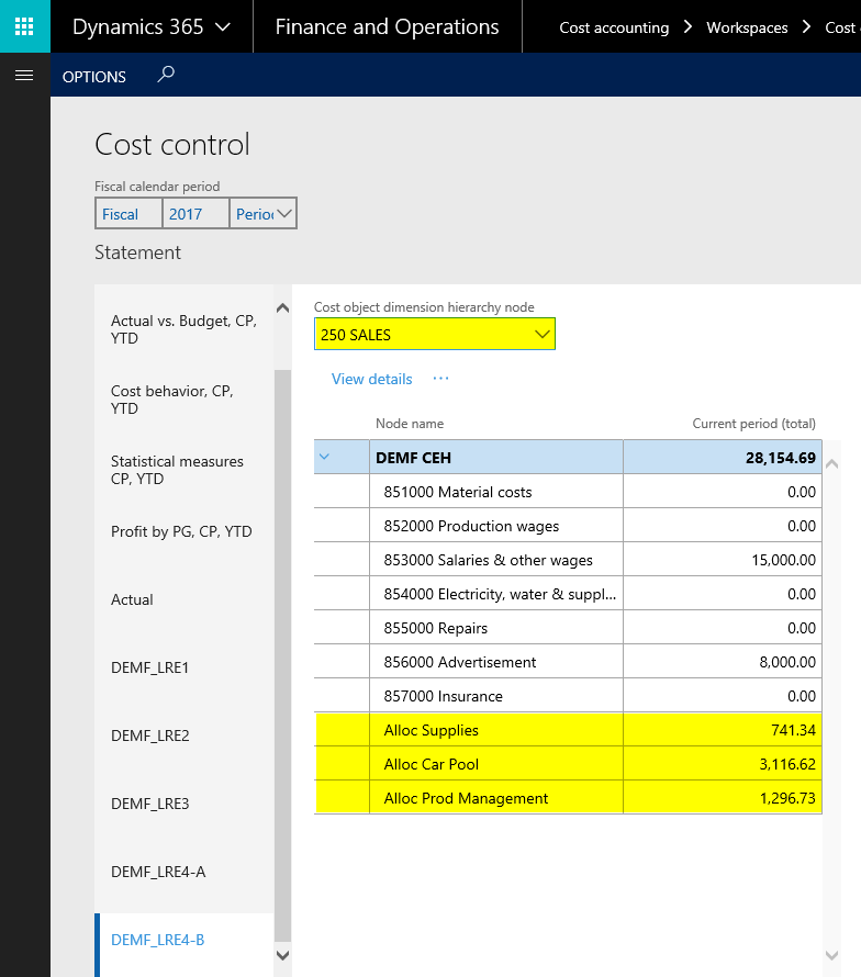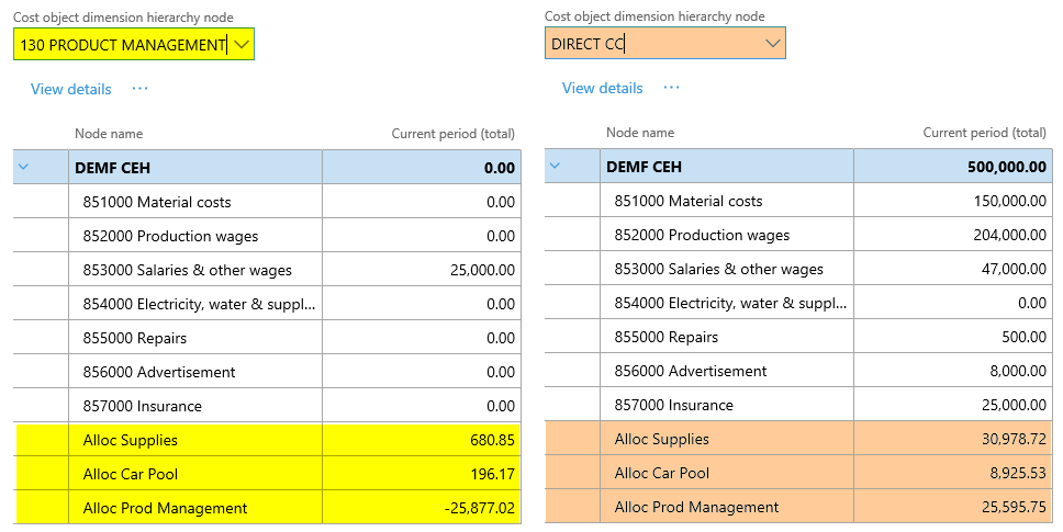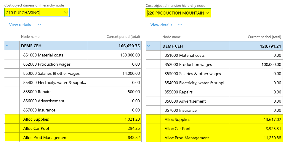 This example illustrates once again that previously used statistical measures and formulas can be re-used multiple times in the new D365 cost accounting module. This ability can be very beneficial for example if one wants to run simulations or tests based on previously used allocation bases.