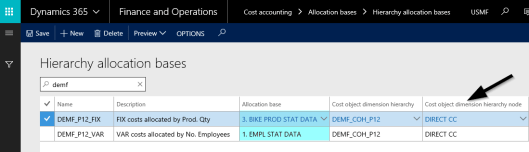 The major advantage of using a hierarchy allocation base is that one can specify to which cost objects cost distributions (or cost allocations) shall be made. In the example shown above, to the direct cost centers (‘DIRECT CC’) only.