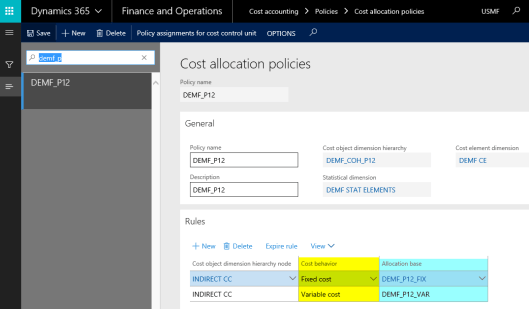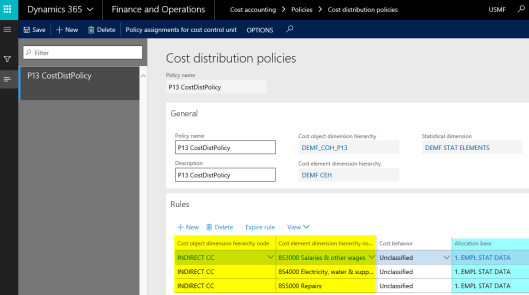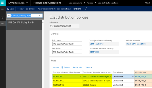 This post focuses on cost distribution policies and how they differ from cost allocation policies. According to the D365 documentation, cost distribution and cost allocation policies differ in a way that cost distributions always occur at the level of the primary cost element of the original costs.