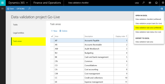 The task areas can be setup in numerous ways. I decided to use the different D365FO modules as my task areas. If you want to follow the same approach, you can download the attached SampleGoLiveChecklistTaskAreas Excel File and use it for importing the task areas in your environment.