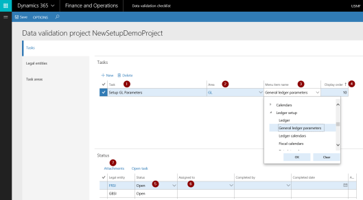 … before the tasks can be setup. Setting up the data validation checklist tasks is the core of the data validation functionality. When setting up those tasks, you need to take the elements highlighted in the next screenprint into consideration. In the following, the highlighted elements will be explained in more detail.