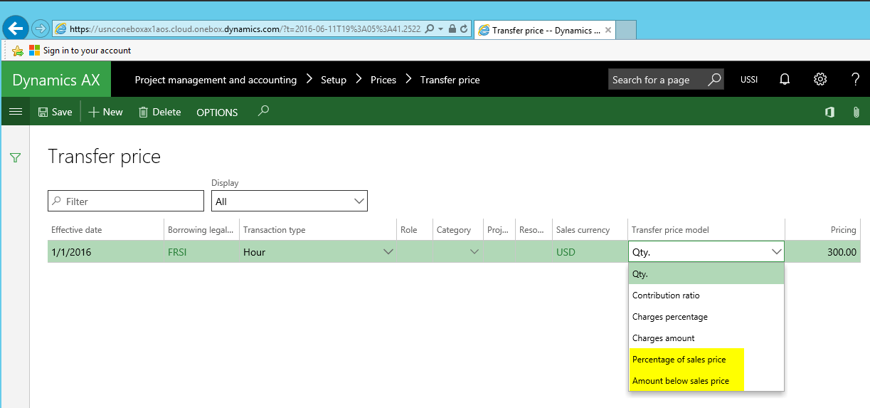 Please note that Dynamics AX allows determining intercompany transfer prices based on the sales price that external customers are charged for through the selection of one of the following (yellow-highlighted) transfer pricing models.