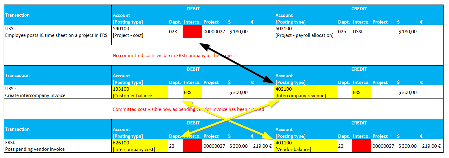 - First, that the costs for the hours recorded in company USSI cannot be identified at the project level in company FRSI – at least as committed costs – until the intercompany project invoice and pending vendor invoice have been created.