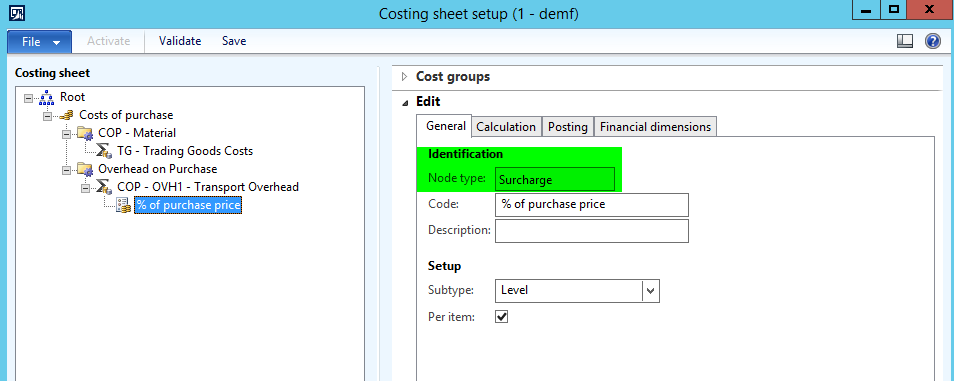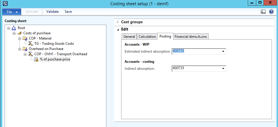 Note: All ledger accounts setup for the “WIP” posting types are Balance Sheet accounts and all ledger accounts setup for the “Cost” posting types are Profit & Loss ledger accounts.