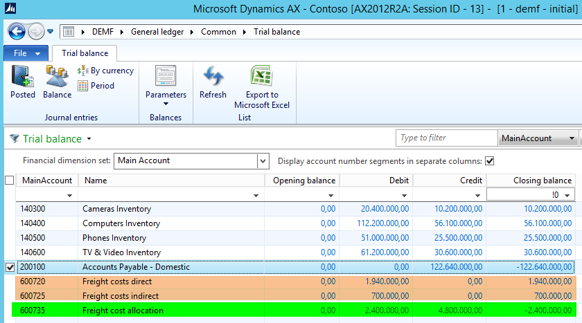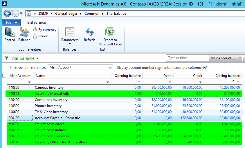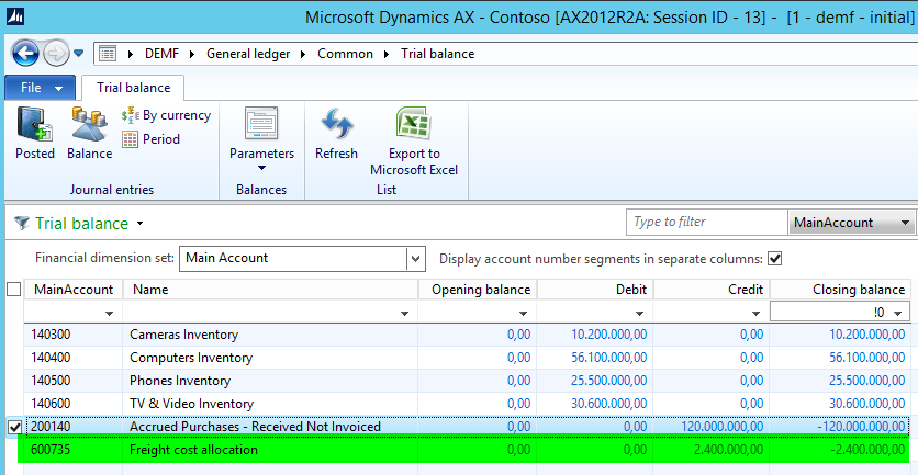 At the same time, AX created a financial inventory transaction that reduced inventory by the very same amount resulting in an overall inventory quantity and amount of 0.